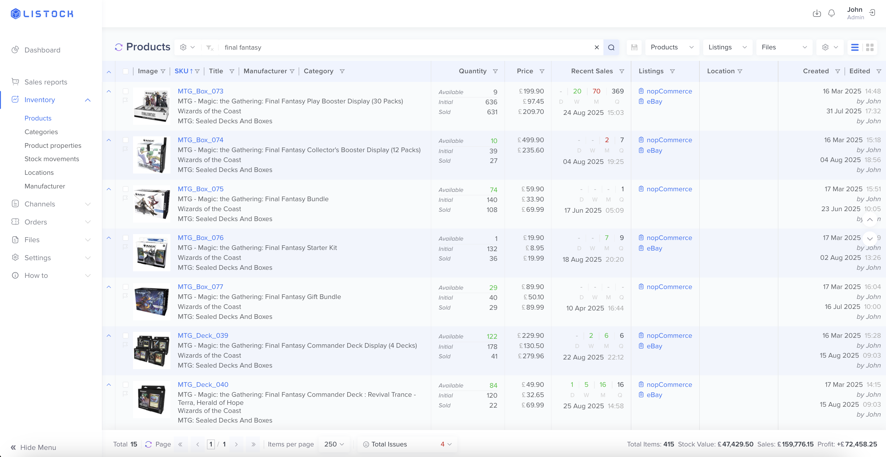Listock is your all-in-one solution for complete stock and order management. Easily create and update products, manage inventory, and sync everything across your connected sales channels.